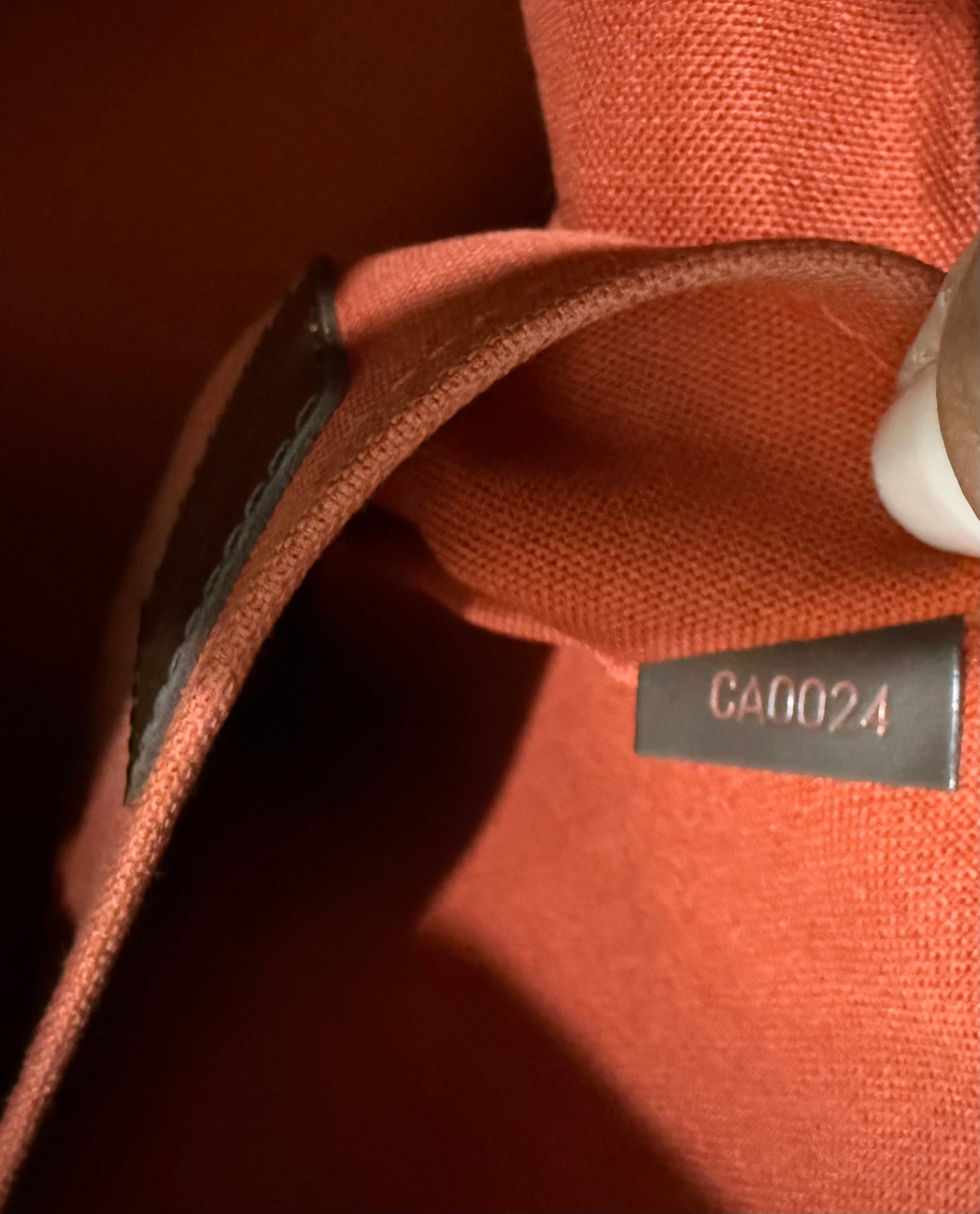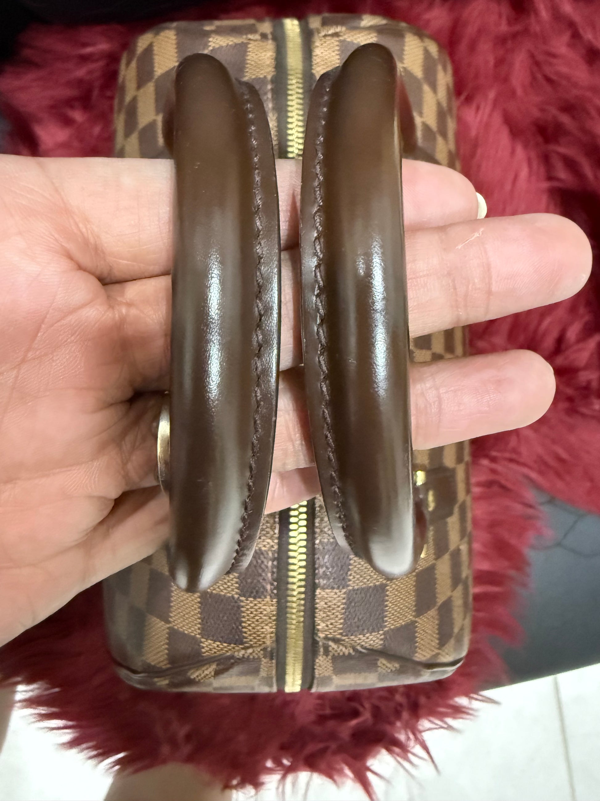 Chic and structured pre-owned Louis Vuitton Ribera bag rendered in the house's iconic Damier Ebene checked coated canvas with tonal leather trim and finished with gold-tone brass hardware.