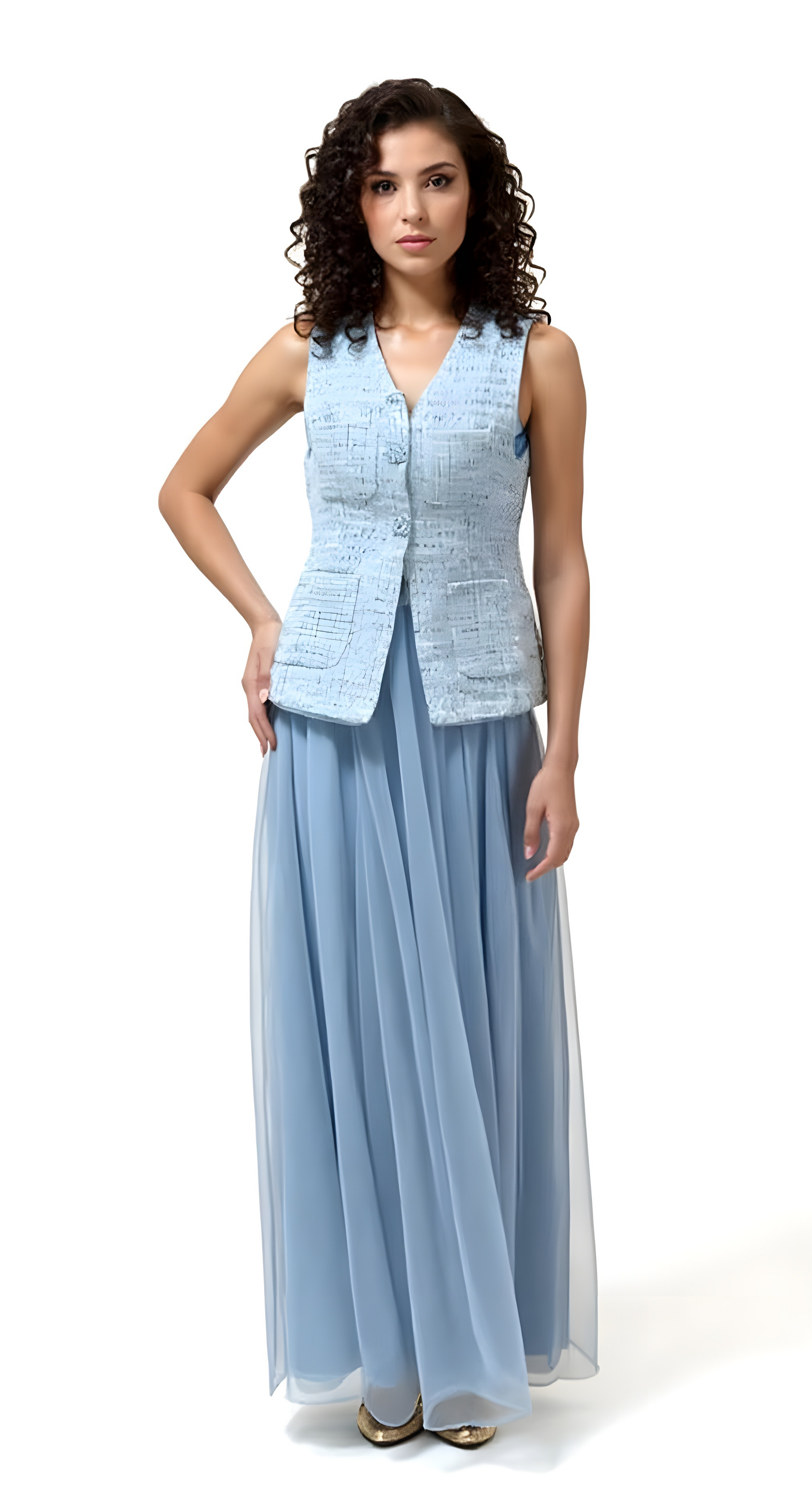 Achieve a polished and sophisticated look with our tweed top and long skirt duo. Made with high-quality tweed fabric, these pieces offer a timeless and elegant aesthetic. Perfect for any formal or professional setting, you'll exude confidence and style.